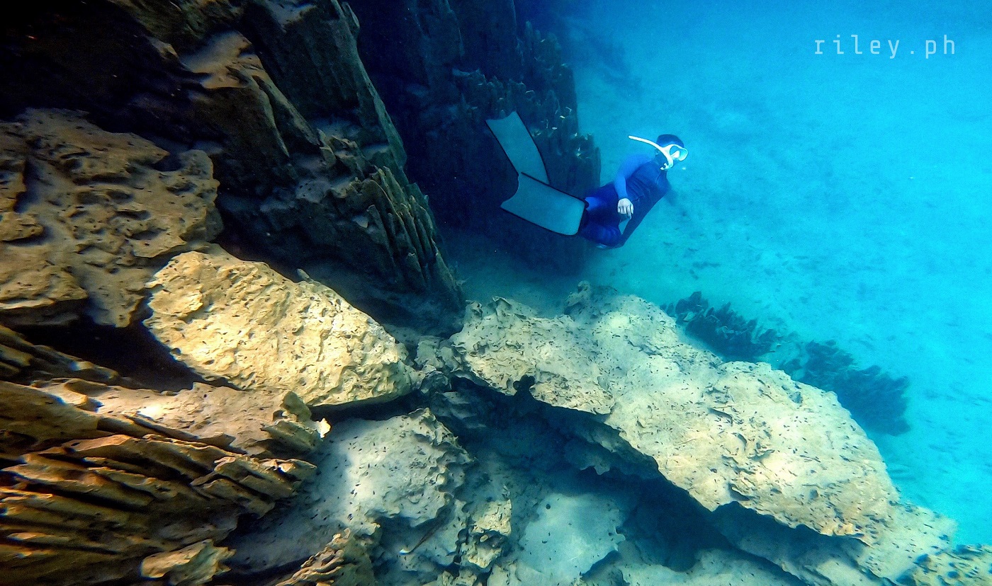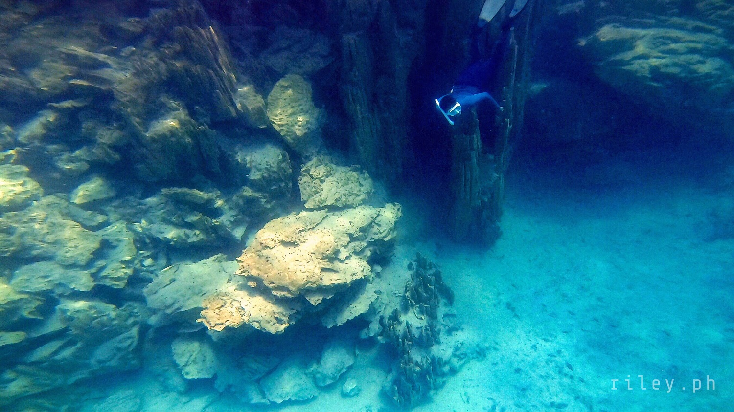 It was a bit hard to position myself before I duck dive as most of the tourists stayed and snorkeled near these limestone walls since this is the only spot where one can see the rock formations, unlike in Kayangan Lake where people are scattered. After all, there’s nothing to see once you get to the middle of the swimming area of Barracuda Lake. Just the creepy dark blue expanse of the lake.