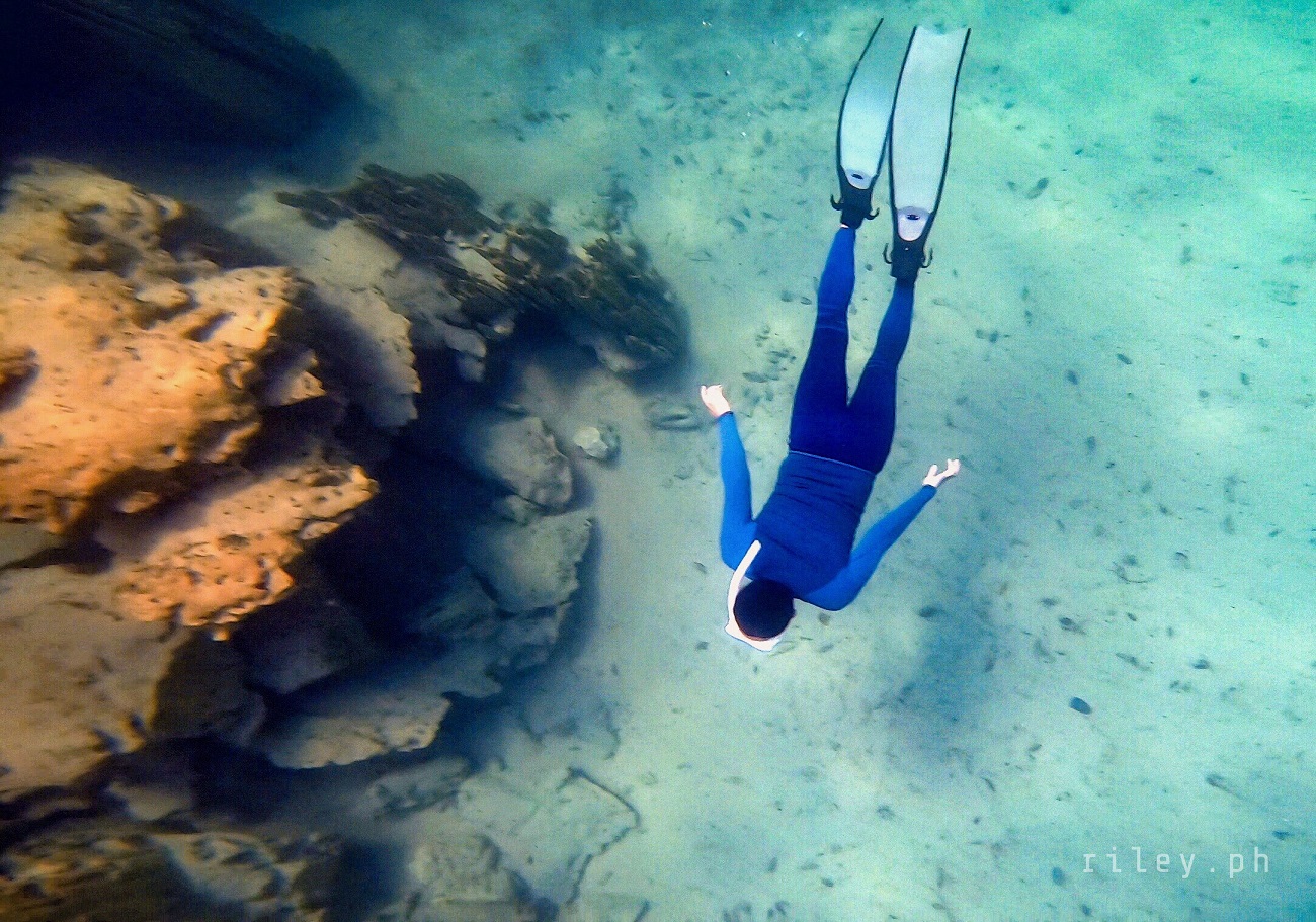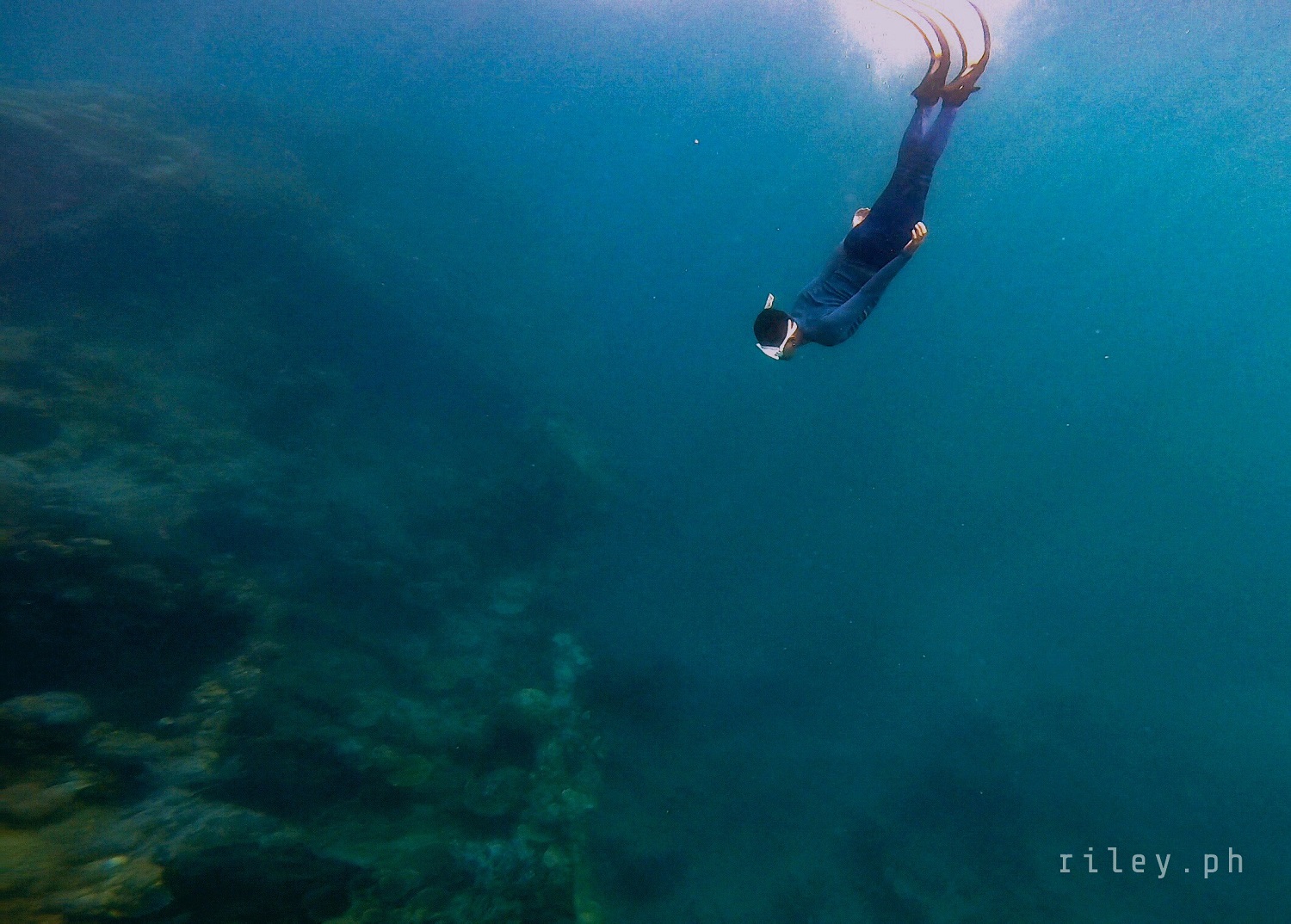 One of my co-joiners got off the boat ahead of me then wore her snorkeling mask afterwards. She shrieked in fright right after taking a peek underneath. “Is it scary?” I asked. “Yes,” she replied. I slowly prepped my diving gears as if to prolong the agony before finally giving in.