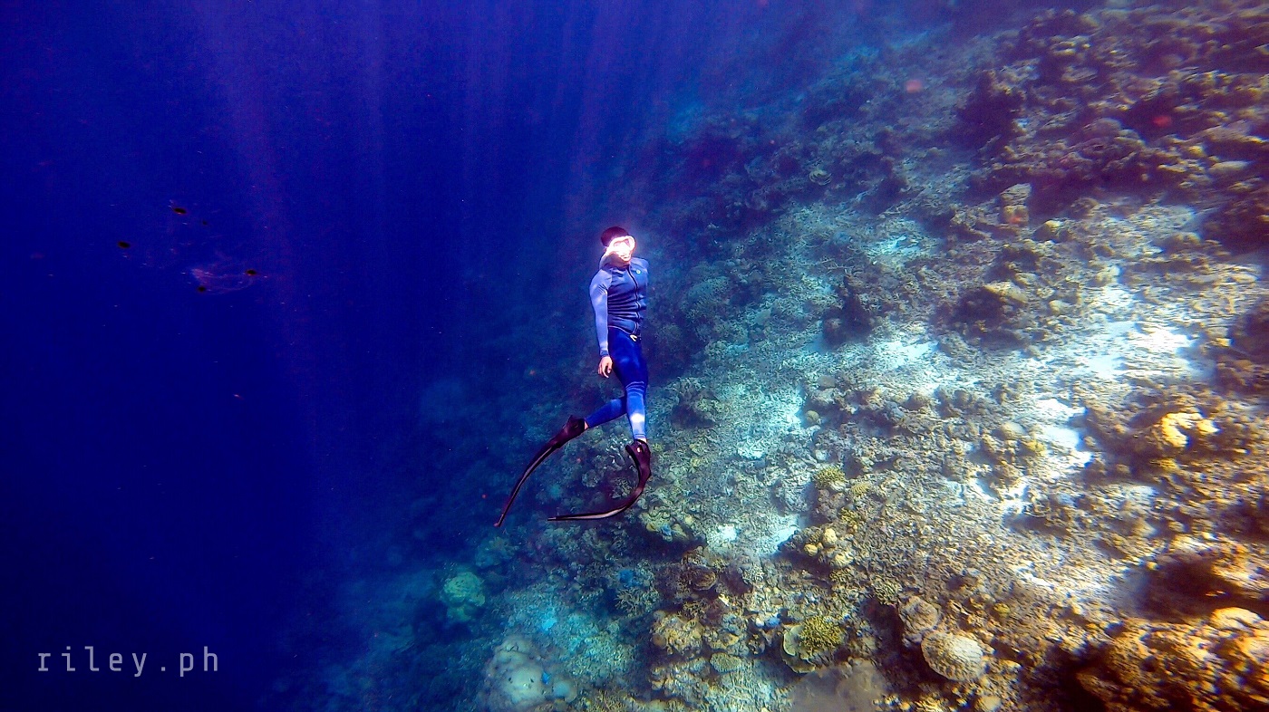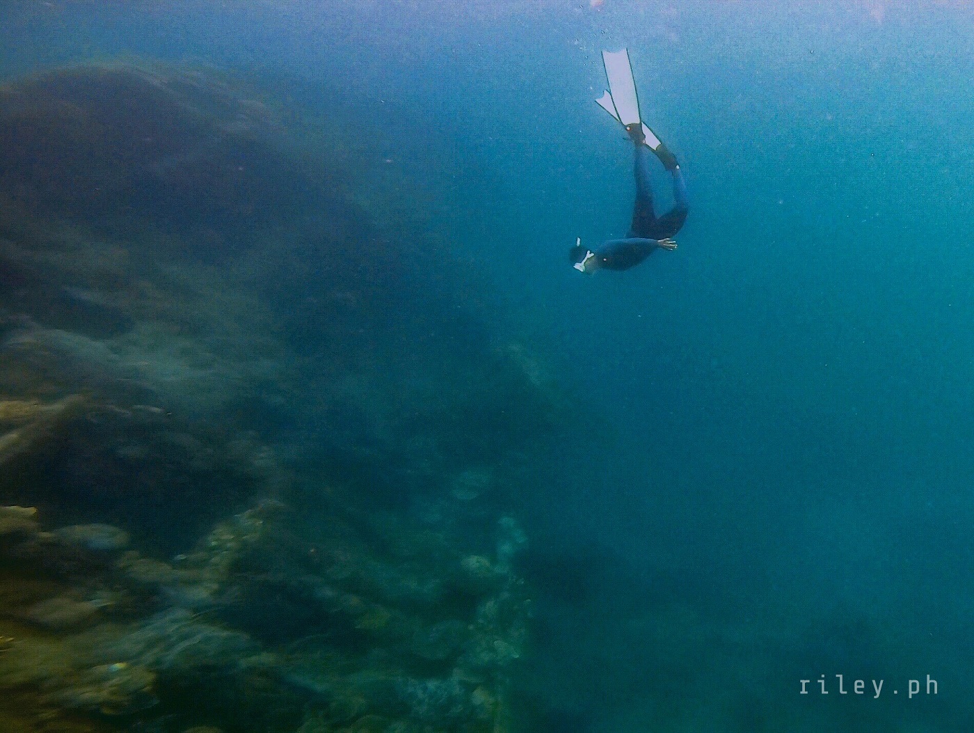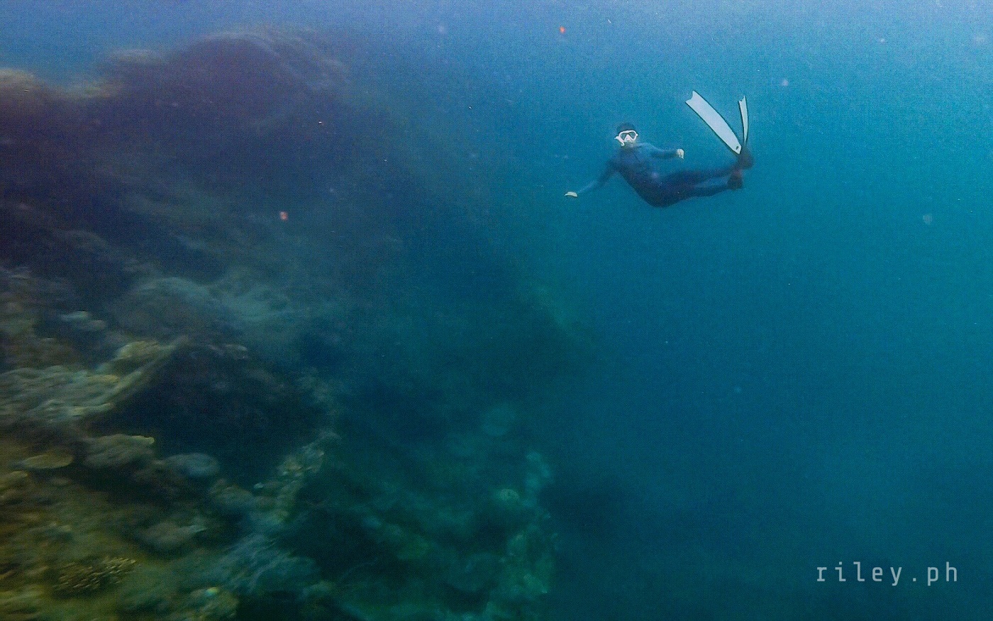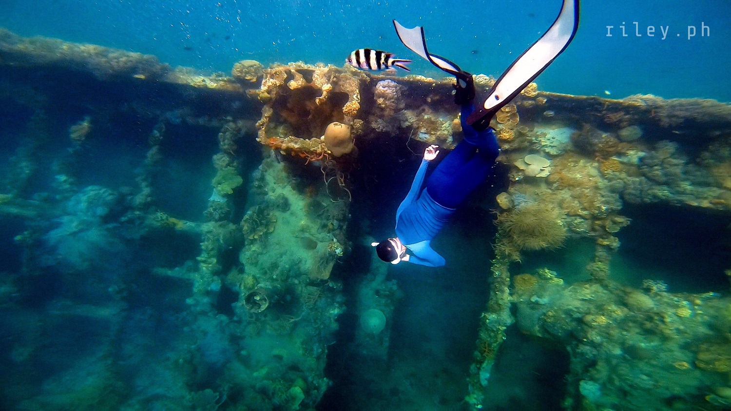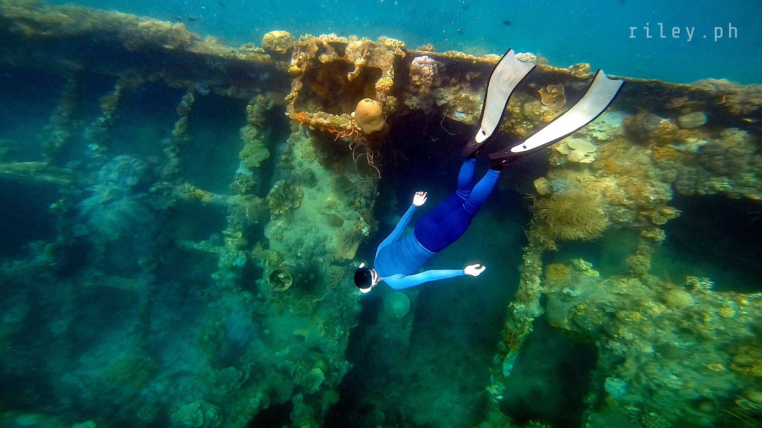 Okay. I have to come clean with a confession. I am a freediver with thalassophobia and submechanophobia. That’s why I actually couldn’t go deeper because I easily freak out so the tendency is to look up then resurface right away once I realize that I am already deep. This fear is one of the reasons I only learned how to swim a few years ago even though I grew up in an island. I may have conquered a small percentage of this fear but I still got a long way to go. I also have a fear of not just submerged man-made objects but anything large underwater such as boulders. Even the thought of these makes me cringe. As our boat was nearing the site of this wreck, I got a gazillion reservations before seeing this with my own eyes. I can do it, I reassured myself. If I experience a panic attack, I’ll just take a peek once then I’m done.