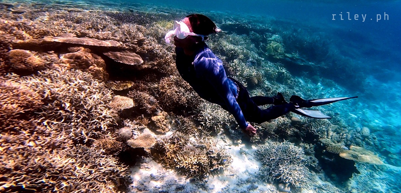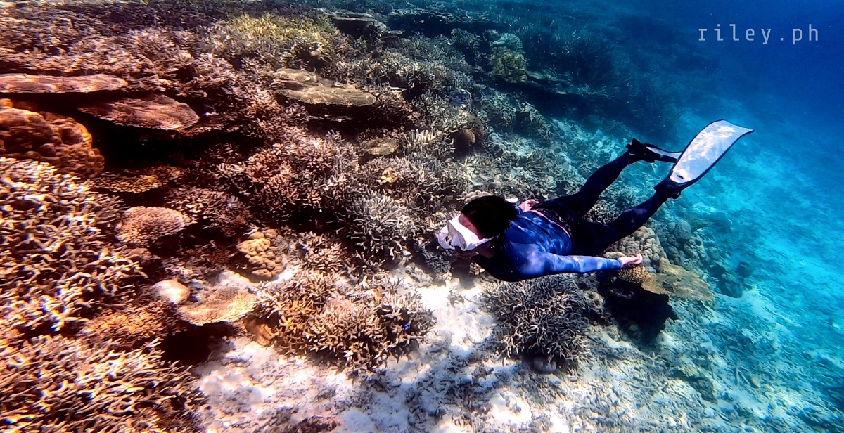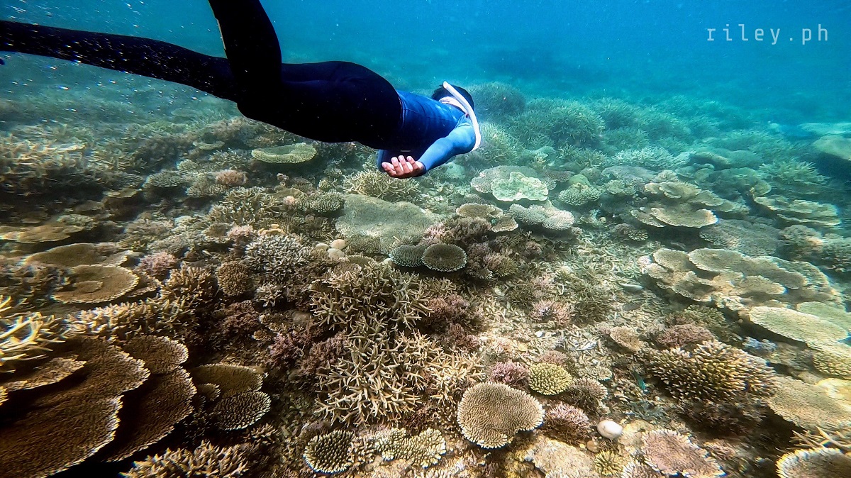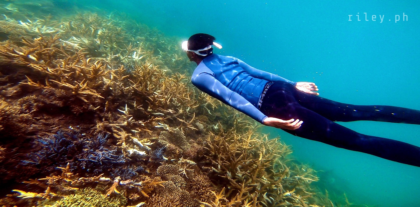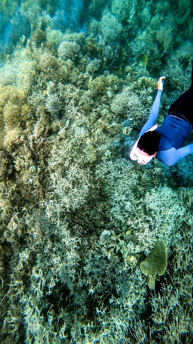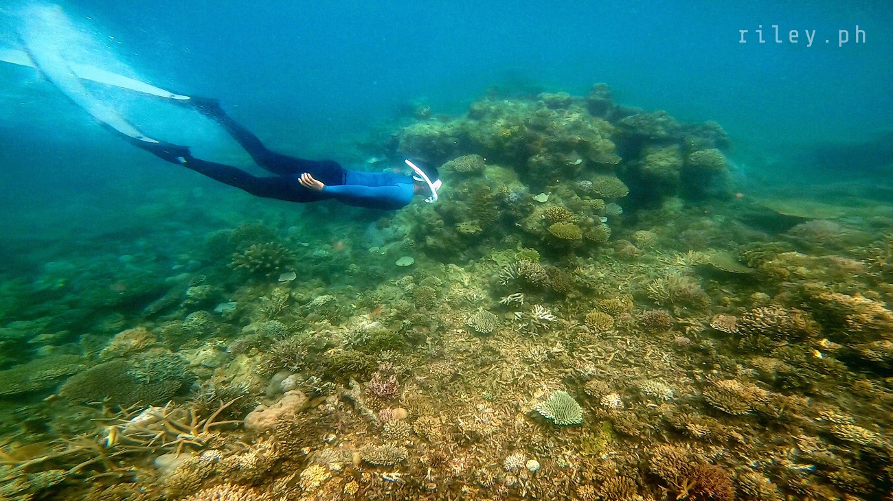 The next day, we strolled and chilled out here at the port to catch the sunrise then went back to the inn to prep for our island hopping tour. I asked our boat crew to start early so we could cover the rest of the islands in our itinerary.This beach named Calampuan Island was first on our list. Our ride was so smooth as if we were sailing on a lake. The weak southwest winds finally died down so there was no strong weather system that would disrupt this adventure of ours.It took us about 45 minutes of crossing Dumaran Channel before we reached the shores of Calampuan. We were welcomed by this island’s owner (or caretaker; I’m not sure though) who asked for the entrance fee. If my memory serves me correctly, my sister and I gave ₱100 (roughly $2) each.The coastline of this beach actually looked different from what I saw in photos online. Some of the pictures show a wide sandbar although most of them were shot during the northeast monsoon season. Just like other sandbars in the country, the direction of the waves and tides at this time of the year caused a shift in the shape of Calampuan’s shoreline.The sand of Calampuan is similar to that of Matintinen Sandbar which has much coarser grains compared to other beaches I’ve been to here in Palawan.The place would have been much more enticing if only the pieces of seagrasses were cleaned. I mean, the island is beautiful but an entrance fee worth a hundred peso is kind of steep for a place that is not well-maintained.Like I always tell myself, there are times that you can’t get what you want in life. So we just enjoyed the peaceful ambience of Calampuan and continued taking shots in angles, albeit limited, that were worth capturing.Apparently, we could only make use of a very few angles in our frames considering the litter of seaweeds on the other side of the island (I didn’t take photos of it because it was quite unpleasant to the eye). The thick pile of seagrasses made the shores seem carpeted with dark-colored clutter.Because nothing really caught my attention at the other side of this beach due to the heap of seaweeds occupying its shore, we finally bid goodbye to Calampuan Island after about half an hour.We cruised towards the direction of Maruyog-ruyog Island. Unfortunately, its owner no longer allows visitors so we had to skip it. We made a stop at a coral garden a couple of hundred meters away from the coast of Maruyog-ruyog.Our boat captain slowed down as we were nearing the coral reef. I frantically changed into my diving gears the moment I saw the corals from the surface of the water. It’s swimming time again!This is probably the only place in my entire backpacking career (*wink) where I blurted out a couple of times to our boatmen that our boat was about to slide against the corals and hit them. They assured me that it only looked shallow because the water was too clear. The moment I dove into the water, I realized they were right. It’s a couple of meters deep. If you’re feeling lazy, you could actually see the corals from the surface without needing to swim.As I was preparing for my dive, I kept looking at Maruyog-ruyog Island from where we were. I tried taking a photo but it was too far for my camera. It would have been nice to play on its wooden walkway.Swimming that early in the morning was not as exhausting as the previous day. The water was so calm and the current was manageable.I told our boat crew that the coral reefs here in Dumaran were so far the most untouched and breathtaking I have ever seen. According to them, a lot of their marine sanctuaries were destroyed by dynamite fishing years ago. Our boat captain was actually one of the locals who utilized such method back then. Luckily, the LGUs intervened which in turn restored the coral reefs to its pristine state.Aside from the fact that the coral population here in Dumaran flourished since dynamite fishing is now prohibited, this town is also not yet touched by mainstream tourism. Corals being smashed by the heavy steel anchor of boats tend to be a common sight in famed tourist attractions.Thick clouds started covering us but disappeared again after quite some time. I still prefer underwater shots being touched by sunrays than those that are not, just like this picture. The corals in this shot still looked amazing but the colors were a bit dull.I don’t have a background in coral taxonomy so I am not familiar with all the species of corals I’ve seen here. But this one in the photo really caught my attention. I was too preoccupied with all the colorful schools of fish that I didn’t notice I was already a bit far from our boat. This huge formation of corals similar to branches of trees during winter greeted me. It looked creepy because they were so many so I hastily swam back to our boat.My sister just opted to stay on our boat while listening to our boat captain’s stories about his life as a pearl diver and his misadventures as a fisherman. I would go back to the boat’s ladder from time to time to recover and I learned that this boat is regularly used to deliver loads of pigs all the way to Coron. I quickly thought of the open sea situation as the boat passes by El Nido then Linapacan to Calamianes Group of Islands. There was even one instance when our boat captain was traveling to Coron with his uncle and the boat’s outrigger was snapped by huge waves so he had to swim and fix it. But wait, there’s more. He had to fix it while staying afloat amidst big swell in the middle of the night. Yes, in the middle of the night. I wonder how traumatic the journey of the pigs was for hours, as they get splashed by rough seas then finding out that they’re going to be butchered for consumption once they arrived in Coron.Because I was able to get enough sleep the night before, I got the sufficient energy I needed to swim tirelessly. That’s why I suggested my guide to use one life vest as his floater while filming me since it would be exhausting for h