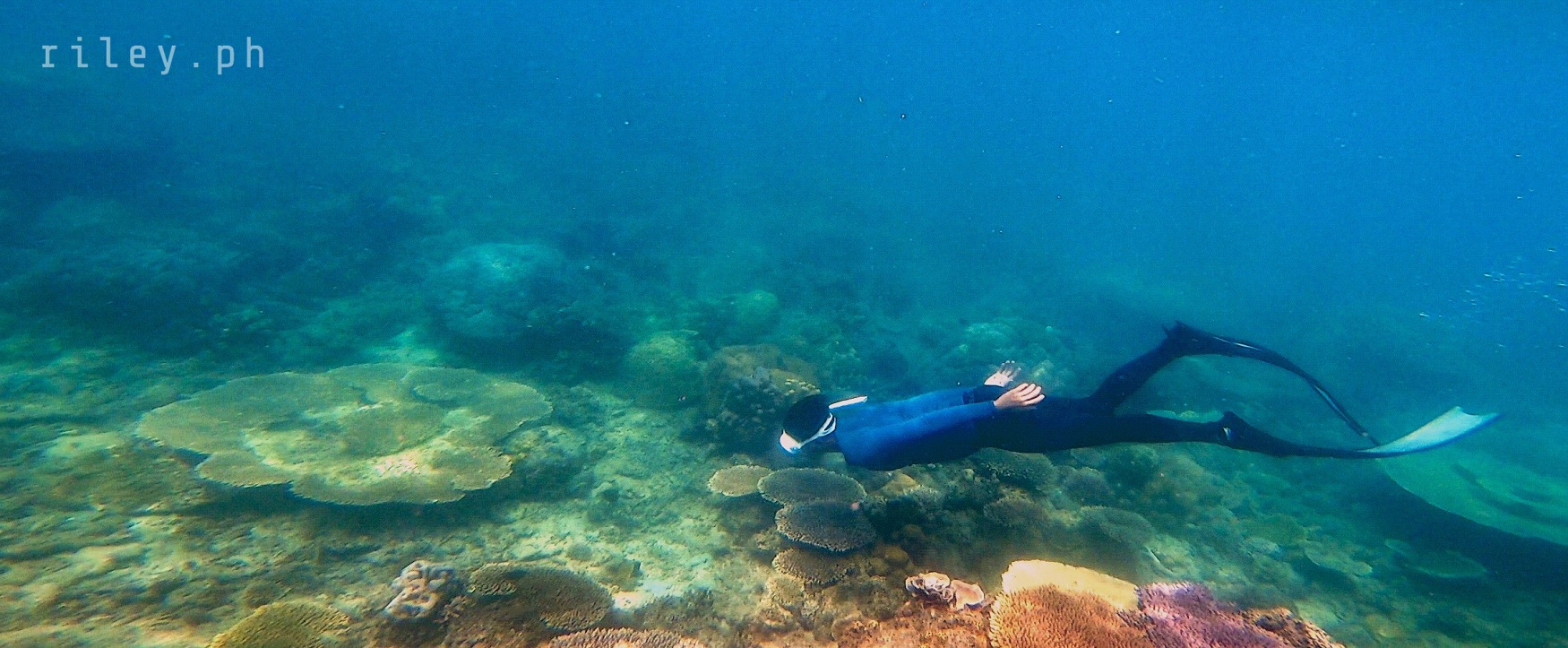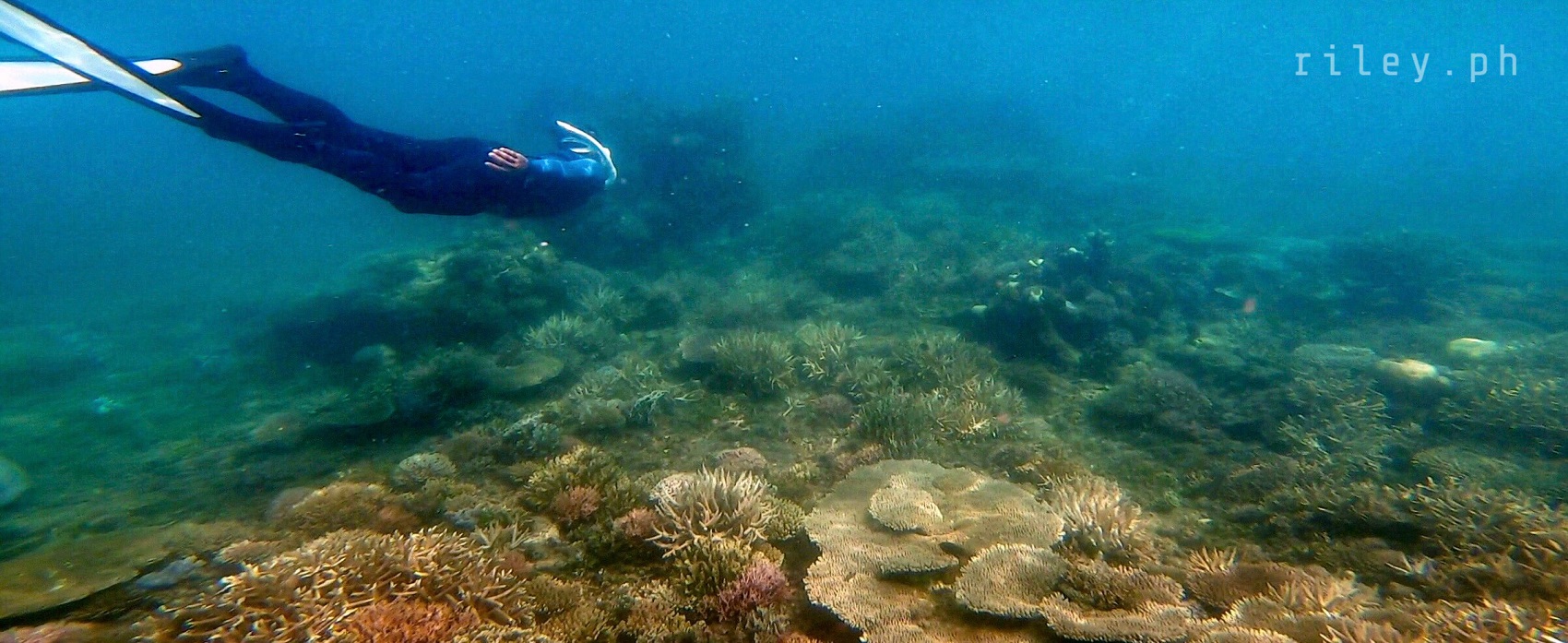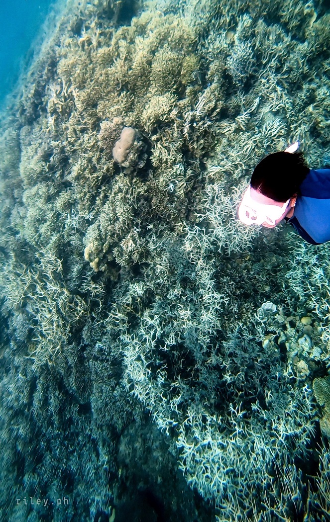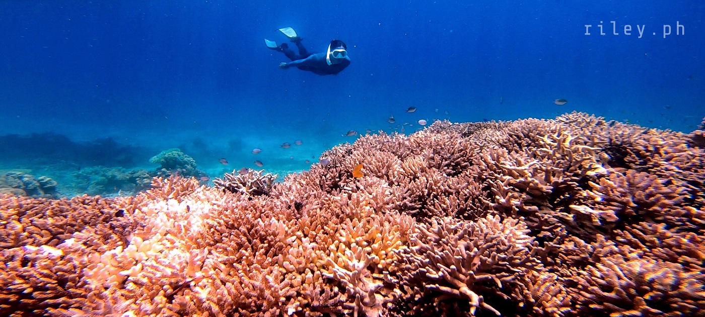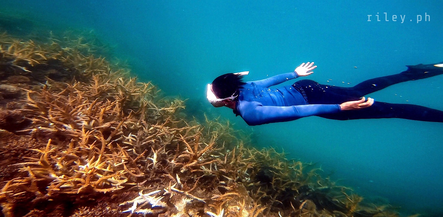 The next day, we strolled and chilled out here at the port to catch the sunrise then went back to the inn to prep for our island hopping tour. I asked our boat crew to start early so we could cover the rest of the islands in our itinerary.This beach named Calampuan Island was first on our list. Our ride was so smooth as if we were sailing on a lake. The weak southwest winds finally died down so there was no strong weather system that would disrupt this adventure of ours.It took us about 45 minutes of crossing Dumaran Channel before we reached the shores of Calampuan. We were welcomed by this island’s owner (or caretaker; I’m not sure though) who asked for the entrance fee. If my memory serves me correctly, my sister and I gave ₱100 (roughly $2) each.The coastline of this beach actually looked different from what I saw in photos online. Some of the pictures show a wide sandbar although most of them were shot during the northeast monsoon season. Just like other sandbars in the country, the direction of the waves and tides at this time of the year caused a shift in the shape of Calampuan’s shoreline.The sand of Calampuan is similar to that of Matintinen Sandbar which has much coarser grains compared to other beaches I’ve been to here in Palawan.The place would have been much more enticing if only the pieces of seagrasses were cleaned. I mean, the island is beautiful but an entrance fee worth a hundred peso is kind of steep for a place that is not well-maintained.Like I always tell myself, there are times that you can’t get what you want in life. So we just enjoyed the peaceful ambience of Calampuan and continued taking shots in angles, albeit limited, that were worth capturing.Apparently, we could only make use of a very few angles in our frames considering the litter of seaweeds on the other side of the island (I didn’t take photos of it because it was quite unpleasant to the eye). The thick pile of seagrasses made the shores seem carpeted with dark-colored clutter.Because nothing really caught my attention at the other side of this beach due to the heap of seaweeds occupying its shore, we finally bid goodbye to Calampuan Island after about half an hour.We cruised towards the direction of Maruyog-ruyog Island. Unfortunately, its owner no longer allows visitors so we had to skip it. We made a stop at a coral garden a couple of hundred meters away from the coast of Maruyog-ruyog.Our boat captain slowed down as we were nearing the coral reef. I frantically changed into my diving gears the moment I saw the corals from the surface of the water. It’s swimming time again!This is probably the only place in my entire backpacking career (*wink) where I blurted out a couple of times to our boatmen that our boat was about to slide against the corals and hit them. They assured me that it only looked shallow because the water was too clear. The moment I dove into the water, I realized they were right. It’s a couple of meters deep. If you’re feeling lazy, you could actually see the corals from the surface without needing to swim.As I was preparing for my dive, I kept looking at Maruyog-ruyog Island from where we were. I tried taking a photo but it was too far for my camera. It would have been nice to play on its wooden walkway.Swimming that early in the morning was not as exhausting as the previous day. The water was so calm and the current was manageable.I told our boat crew that the coral reefs here in Dumaran were so far the most untouched and breathtaking I have ever seen. According to them, a lot of their marine sanctuaries were destroyed by dynamite fishing years ago. Our boat captain was actually one of the locals who utilized such method back then. Luckily, the LGUs intervened which in turn restored the coral reefs to its pristine state.Aside from the fact that the coral population here in Dumaran flourished since dynamite fishing is now prohibited, this town is also not yet touched by mainstream tourism. Corals being smashed by the heavy steel anchor of boats tend to be a common sight in famed tourist attractions.Thick clouds started covering us but disappeared again after quite some time. I still prefer underwater shots being touched by sunrays than those that are not, just like this picture. The corals in this shot still looked amazing but the colors were a bit dull.I don’t have a background in coral taxonomy so I am not familiar with all the species of corals I’ve seen here. But this one in the photo really caught my attention. I was too preoccupied with all the colorful schools of fish that I didn’t notice I was already a bit far from our boat. This huge formation of corals similar to branches of trees during winter greeted me. It looked creepy because they were so many so I hastily swam back to our boat.My sister just opted to stay on our boat while listening to our boat captain’s stories about his life as a pearl diver and his misadventures as a fisherman. I would go back to the boat’s ladder from time to time to recover and I learned that this boat is regularly used to deliver loads of pigs all the way to Coron. I quickly thought of the open sea situation as the boat passes by El Nido then Linapacan to Calamianes Group of Islands. There was even one instance when our boat captain was traveling to Coron with his uncle and the boat’s outrigger was snapped by huge waves so he had to swim and fix it. But wait, there’s more. He had to fix it while staying afloat amidst big swell in the middle of the night. Yes, in the middle of the night. I wonder how traumatic the journey of the pigs was for hours, as they get splashed by rough seas then finding out that they’re going to be butchered for consumption once they arrived in Coron.Because I was able to get enough sleep the night before, I got the sufficient energy I needed to swim tirelessly. That’s why I suggested my guide to use one life vest as his floater while filming me since it would be exhausting for h