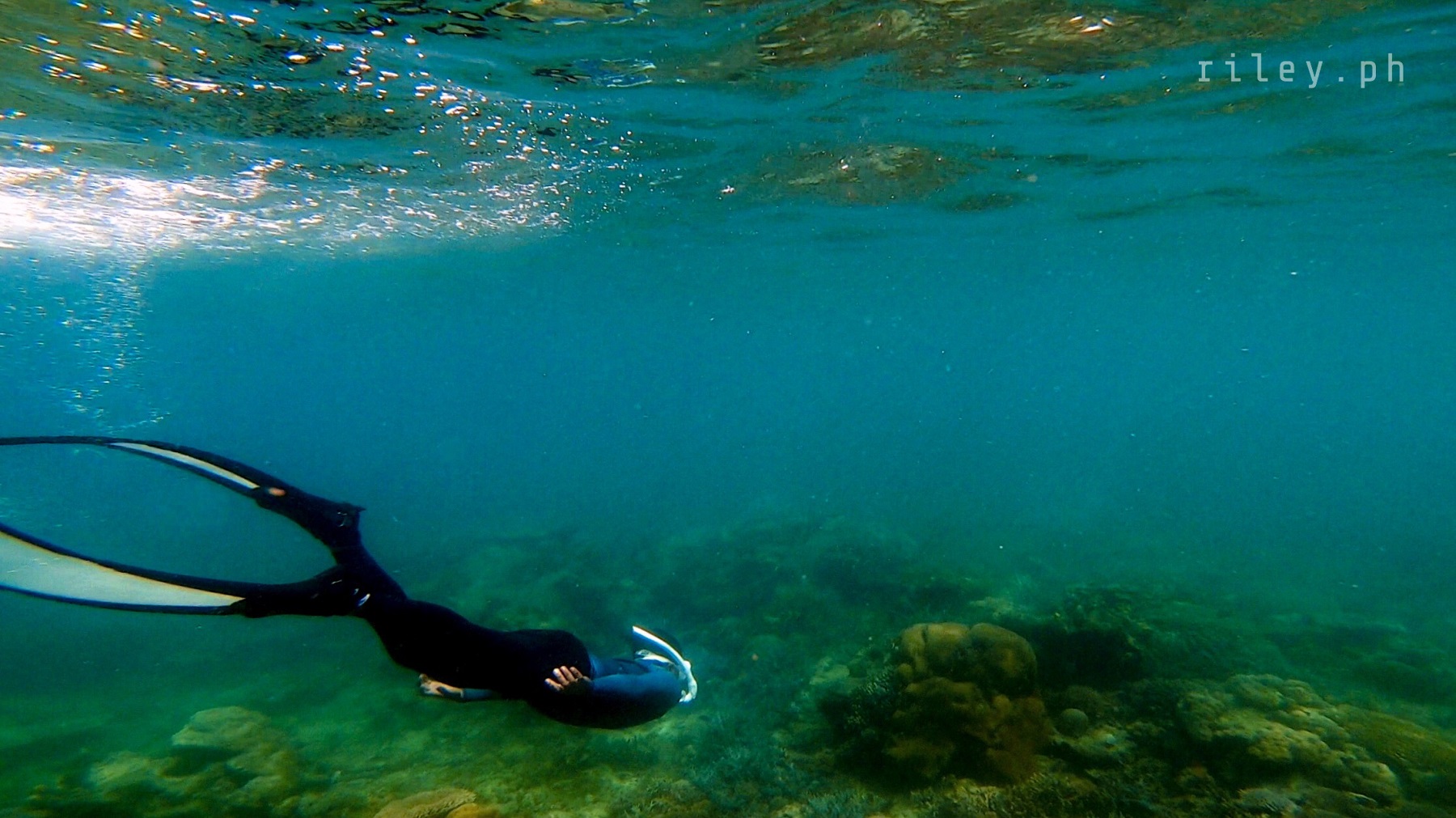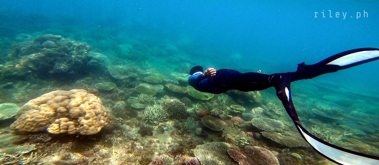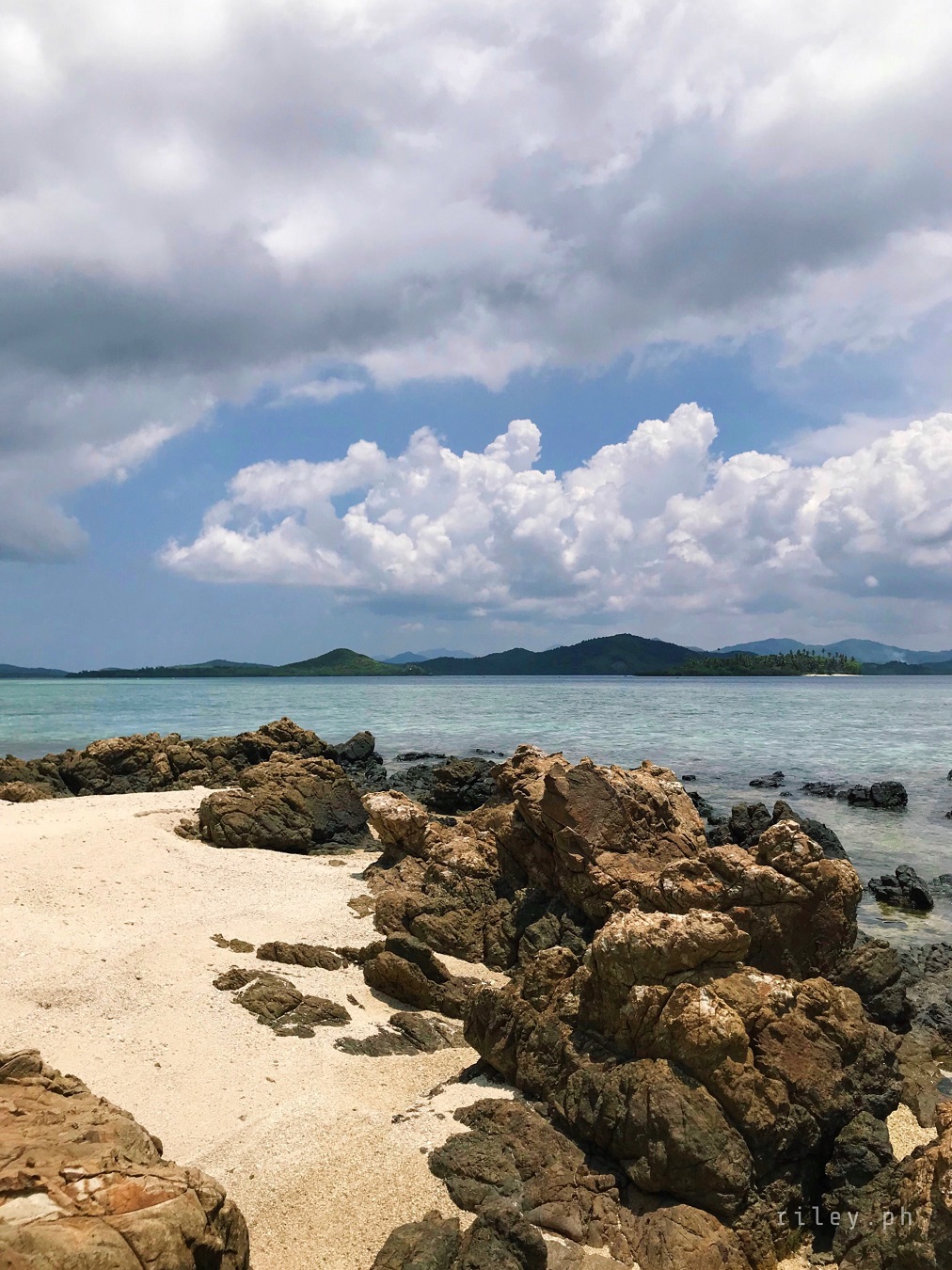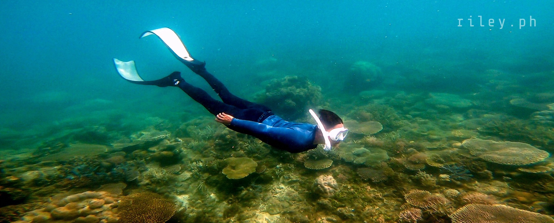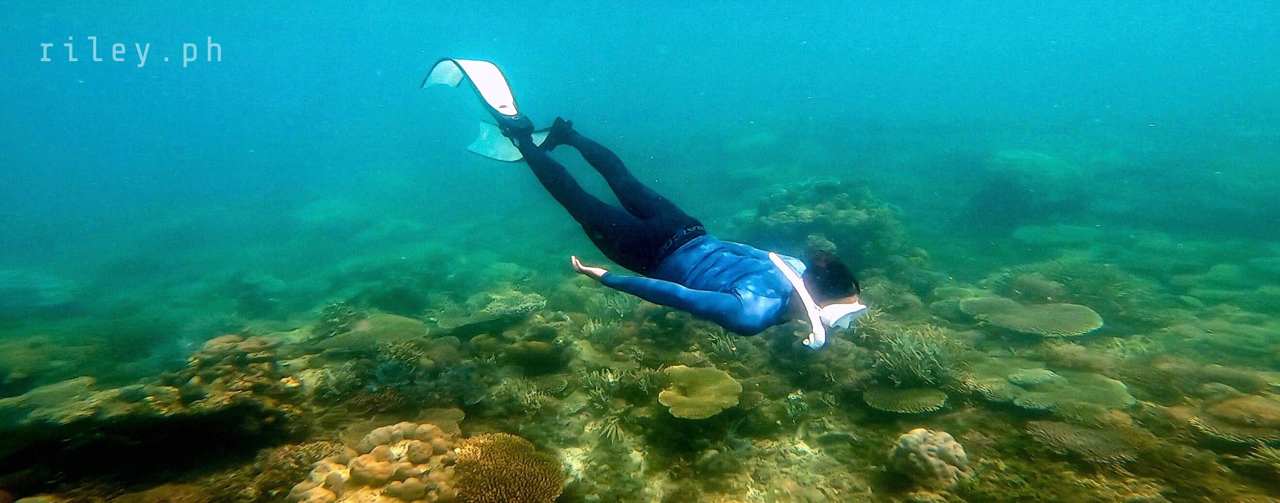 The next day, we strolled and chilled out here at the port to catch the sunrise then went back to the inn to prep for our island hopping tour. I asked our boat crew to start early so we could cover the rest of the islands in our itinerary.This beach named Calampuan Island was first on our list. Our ride was so smooth as if we were sailing on a lake. The weak southwest winds finally died down so there was no strong weather system that would disrupt this adventure of ours.It took us about 45 minutes of crossing Dumaran Channel before we reached the shores of Calampuan. We were welcomed by this island’s owner (or caretaker; I’m not sure though) who asked for the entrance fee. If my memory serves me correctly, my sister and I gave ₱100 (roughly $2) each.The coastline of this beach actually looked different from what I saw in photos online. Some of the pictures show a wide sandbar although most of them were shot during the northeast monsoon season. Just like other sandbars in the country, the direction of the waves and tides at this time of the year caused a shift in the shape of Calampuan’s shoreline.The sand of Calampuan is similar to that of Matintinen Sandbar which has much coarser grains compared to other beaches I’ve been to here in Palawan.The place would have been much more enticing if only the pieces of seagrasses were cleaned. I mean, the island is beautiful but an entrance fee worth a hundred peso is kind of steep for a place that is not well-maintained.Like I always tell myself, there are times that you can’t get what you want in life. So we just enjoyed the peaceful ambience of Calampuan and continued taking shots in angles, albeit limited, that were worth capturing.Apparently, we could only make use of a very few angles in our frames considering the litter of seaweeds on the other side of the island (I didn’t take photos of it because it was quite unpleasant to the eye). The thick pile of seagrasses made the shores seem carpeted with dark-colored clutter.Because nothing really caught my attention at the other side of this beach due to the heap of seaweeds occupying its shore, we finally bid goodbye to Calampuan Island after about half an hour.We cruised towards the direction of Maruyog-ruyog Island. Unfortunately, its owner no longer allows visitors so we had to skip it. We made a stop at a coral garden a couple of hundred meters away from the coast of Maruyog-ruyog.Our boat captain slowed down as we were nearing the coral reef. I frantically changed into my diving gears the moment I saw the corals from the surface of the water. It’s swimming time again!This is probably the only place in my entire backpacking career (*wink) where I blurted out a couple of times to our boatmen that our boat was about to slide against the corals and hit them. They assured me that it only looked shallow because the water was too clear. The moment I dove into the water, I realized they were right. It’s a couple of meters deep. If you’re feeling lazy, you could actually see the corals from the surface without needing to swim.As I was preparing for my dive, I kept looking at Maruyog-ruyog Island from where we were. I tried taking a photo but it was too far for my camera. It would have been nice to play on its wooden walkway.Swimming that early in the morning was not as exhausting as the previous day. The water was so calm and the current was manageable.I told our boat crew that the coral reefs here in Dumaran were so far the most untouched and breathtaking I have ever seen. According to them, a lot of their marine sanctuaries were destroyed by dynamite fishing years ago. Our boat captain was actually one of the locals who utilized such method back then. Luckily, the LGUs intervened which in turn restored the coral reefs to its pristine state.Aside from the fact that the coral population here in Dumaran flourished since dynamite fishing is now prohibited, this town is also not yet touched by mainstream tourism. Corals being smashed by the heavy steel anchor of boats tend to be a common sight in famed tourist attractions.Thick clouds started covering us but disappeared again after quite some time. I still prefer underwater shots being touched by sunrays than those that are not, just like this picture. The corals in this shot still looked amazing but the colors were a bit dull.I don’t have a background in coral taxonomy so I am not familiar with all the species of corals I’ve seen here. But this one in the photo really caught my attention. I was too preoccupied with all the colorful schools of fish that I didn’t notice I was already a bit far from our boat. This huge formation of corals similar to branches of trees during winter greeted me. It looked creepy because they were so many so I hastily swam back to our boat.My sister just opted to stay on our boat while listening to our boat captain’s stories about his life as a pearl diver and his misadventures as a fisherman. I would go back to the boat’s ladder from time to time to recover and I learned that this boat is regularly used to deliver loads of pigs all the way to Coron. I quickly thought of the open sea situation as the boat passes by El Nido then Linapacan to Calamianes Group of Islands. There was even one instance when our boat captain was traveling to Coron with his uncle and the boat’s outrigger was snapped by huge waves so he had to swim and fix it. But wait, there’s more. He had to fix it while staying afloat amidst big swell in the middle of the night. Yes, in the middle of the night. I wonder how traumatic the journey of the pigs was for hours, as they get splashed by rough seas then finding out that they’re going to be butchered for consumption once they arrived in Coron.Because I was able to get enough sleep the night before, I got the sufficient energy I needed to swim tirelessly. That’s why I suggested my guide to use one life vest as his floater while filming me since it would be exhausting for h
